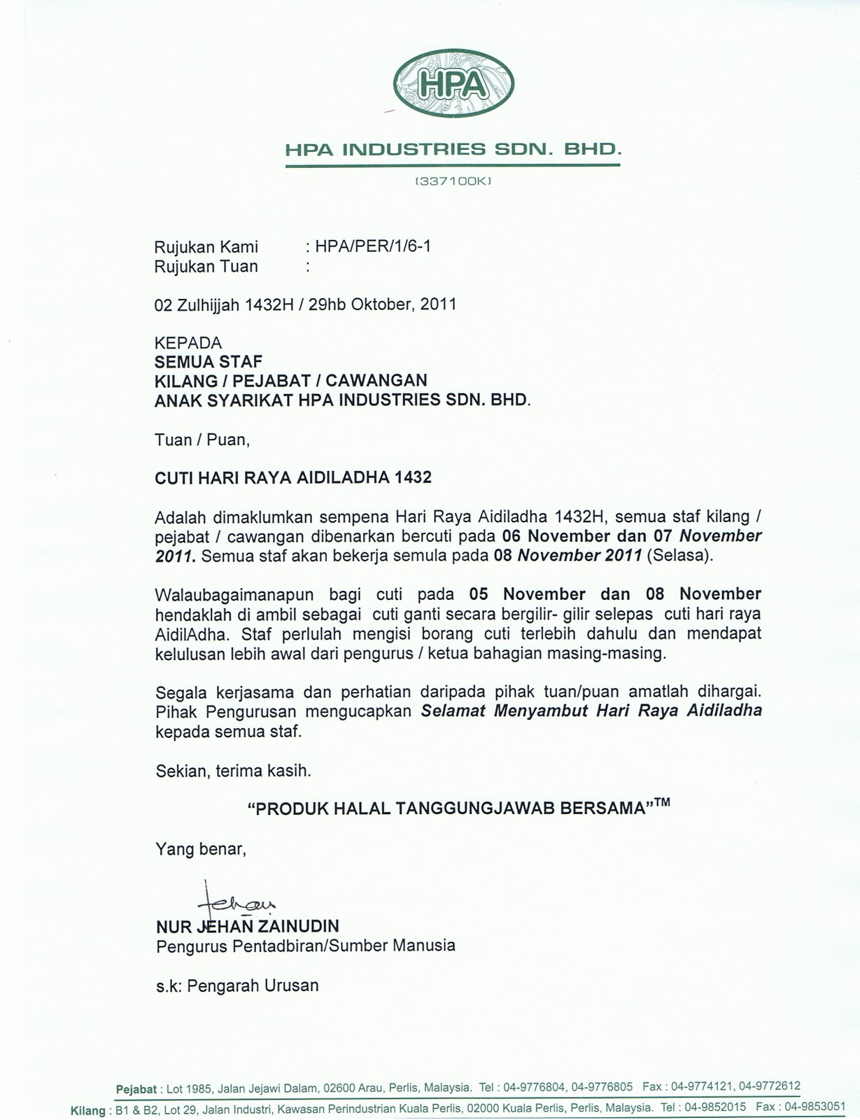 HPA ZON TIMUR MEMO CUTI HARI RAYA AIDIL ADHA